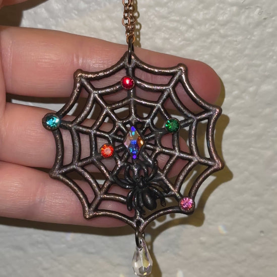 "Nightmare Before Christmas" Handmade Crystal Spiderweb Ornament | Electroformed Copper Christmas Tree Décor