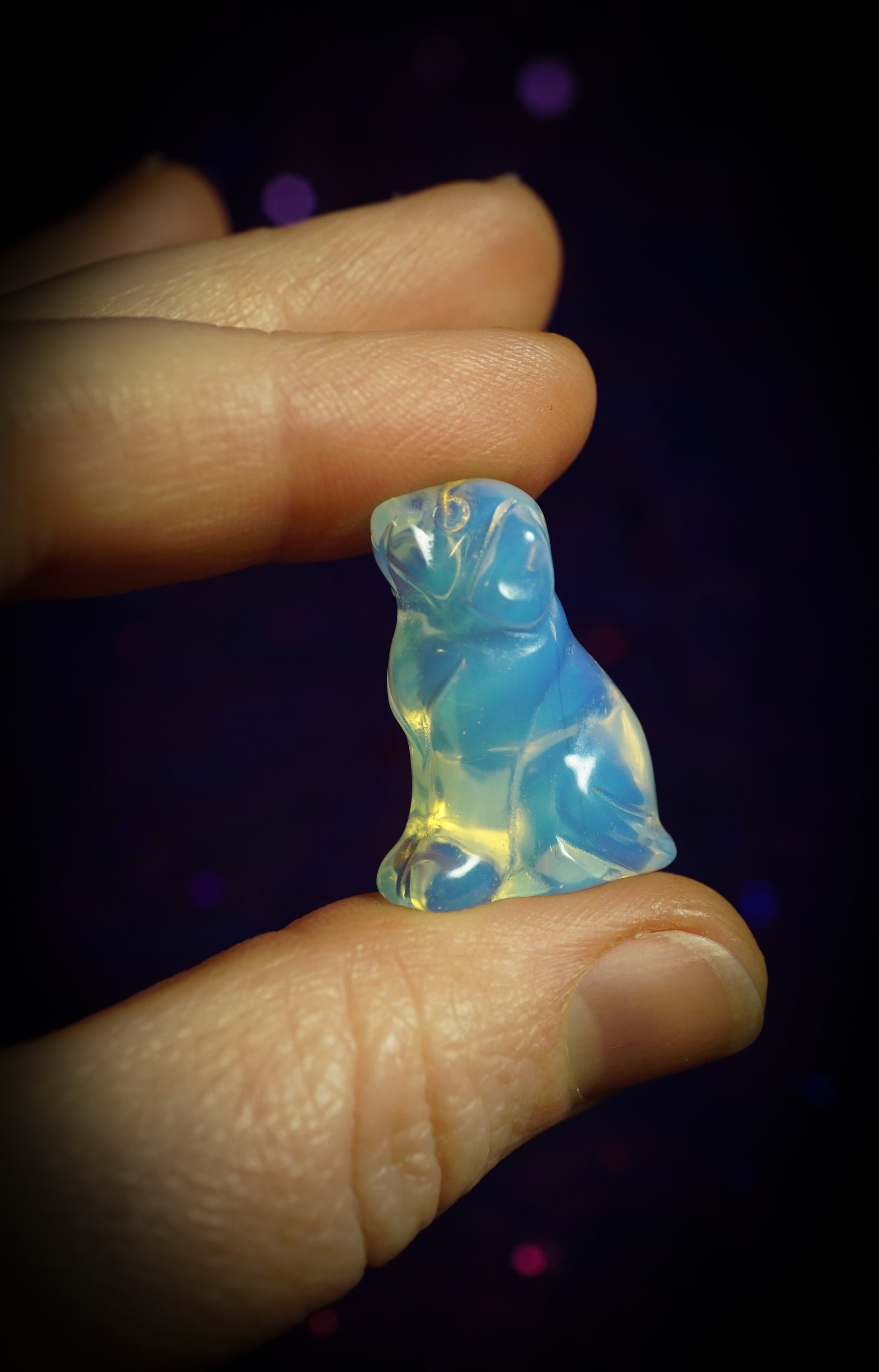 This crystal gift set includes: Tiger's Eye Cat, Opalite Dog, Dream Amethyst Man Figure, Green Dot Jasper Mushroom, Red Jasper Moon, Black & Blue Skull (this may be Sodalite, but I cannot confirm because it has mysterious light chatoyance on the back of the skull!)